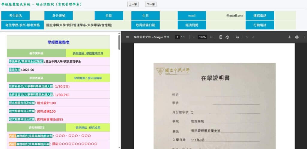 - 詳細招生資訊請參閱簡章:https://recruit.nchu.edu.tw/grade-exam/sele/115/115sele_PAPER.aspx