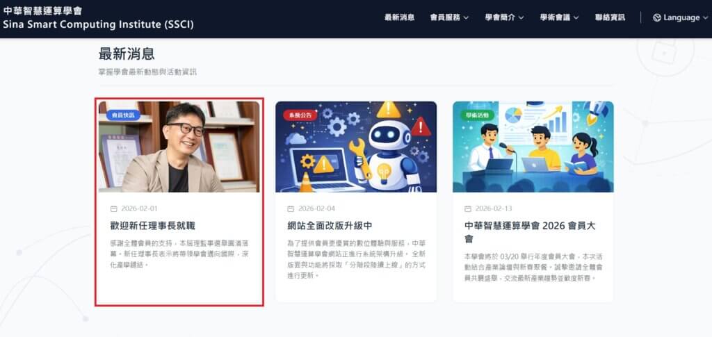 榮譽榜:賀~本系林詠章特聘教授榮任中華智慧運算學會理事長